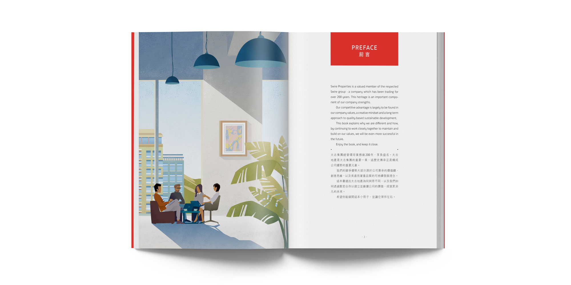 Monday has worked with Swire Properties on codifying, narrating and explaining the company brand for the last 7 years. This work is manifested in a varied range of collateral and communication. A selection of which can be seen below.